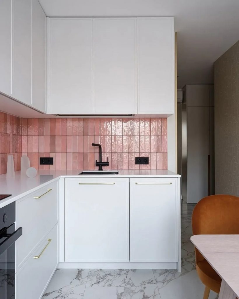 Вертикальная укладка кабанчика — тот самый дизайнерский прием, который работает безотказно. Плитка, устремленная вверх, создает идеальную оптическую иллюзию: потолки кажутся выше, а пространство — более стройным и воздушным.
