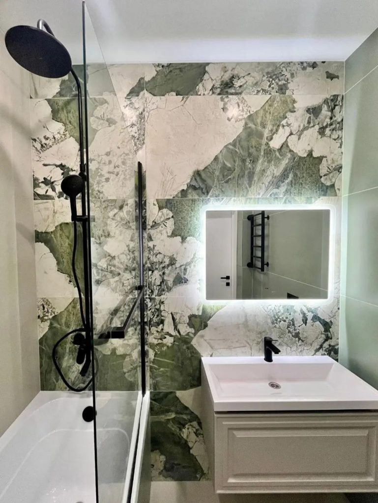 Крупный формат как искусство. Плита от 1200 мм позволяет создавать бесшовные поверхности, которые воспринимаются как дорогое полотно, а не как набор отдельных элементов.